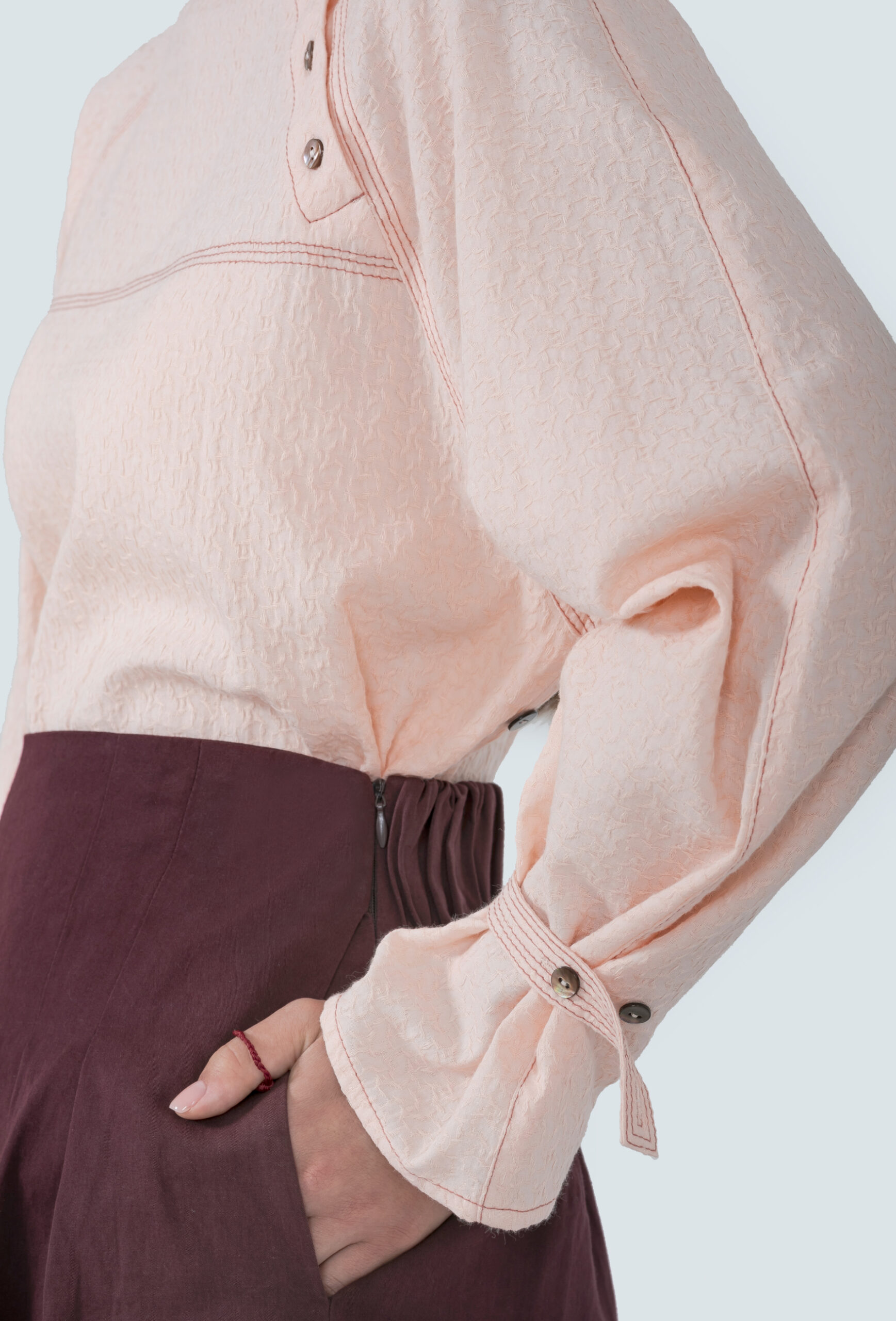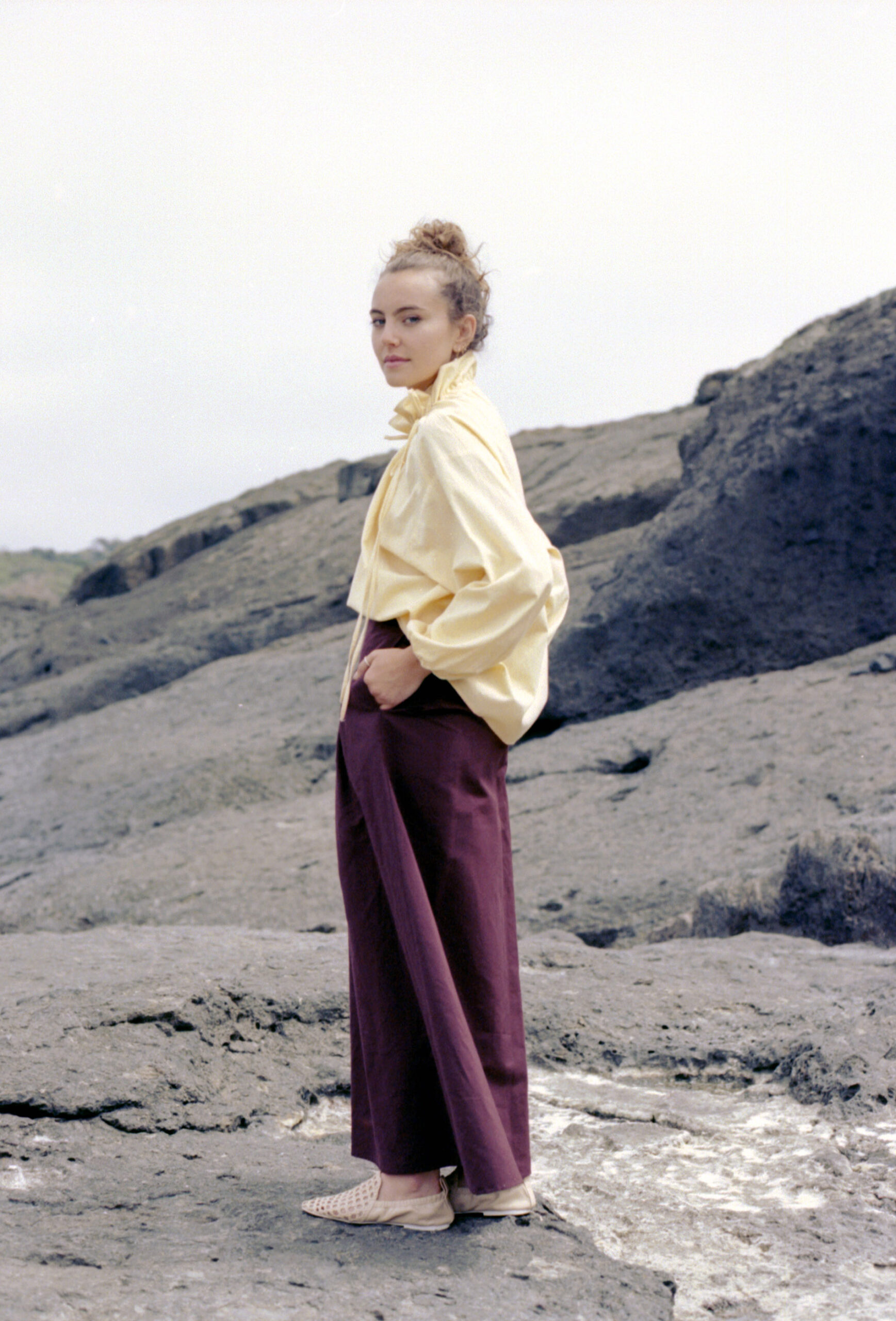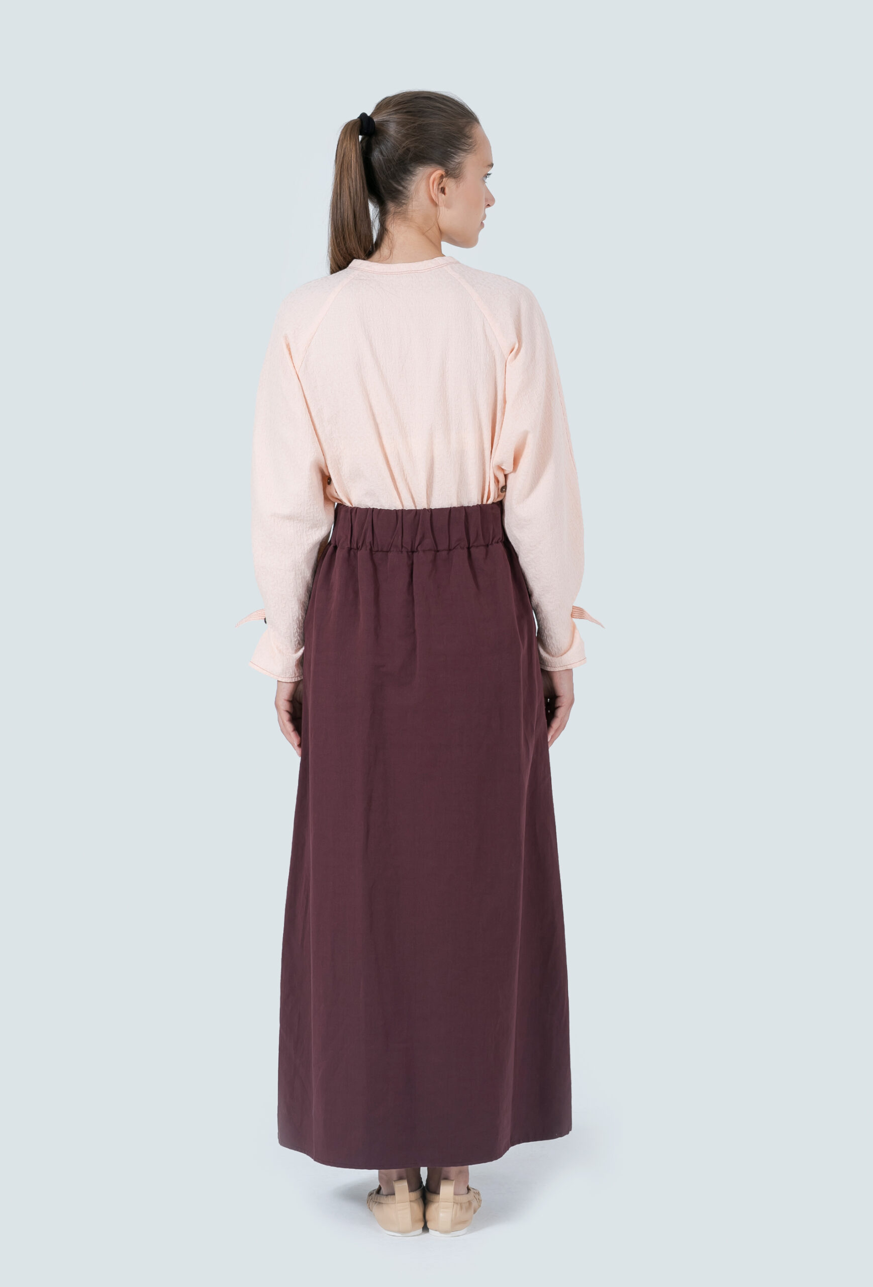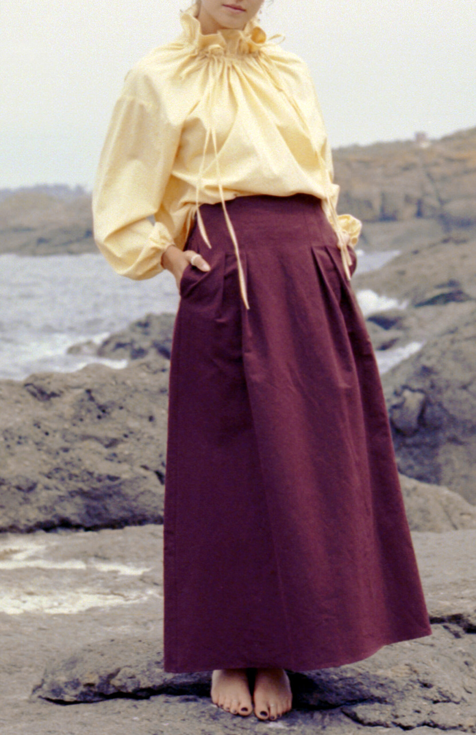 Yüksek bel, arkada elastik kemer, pamuk keten karışımı çay boyunda etek