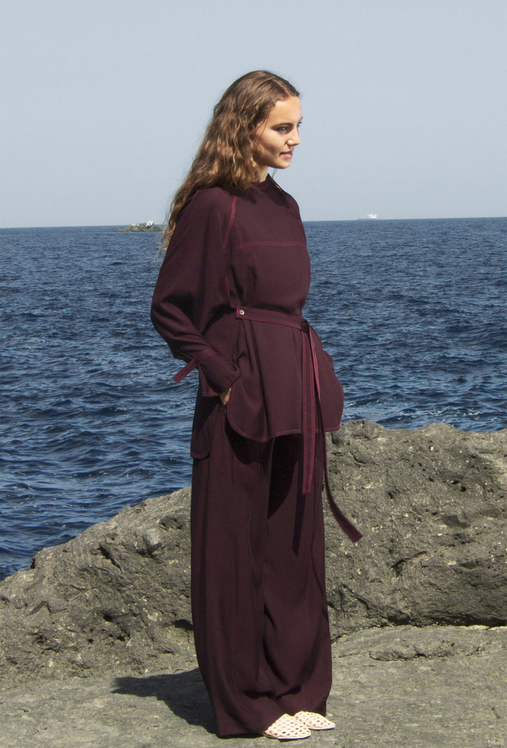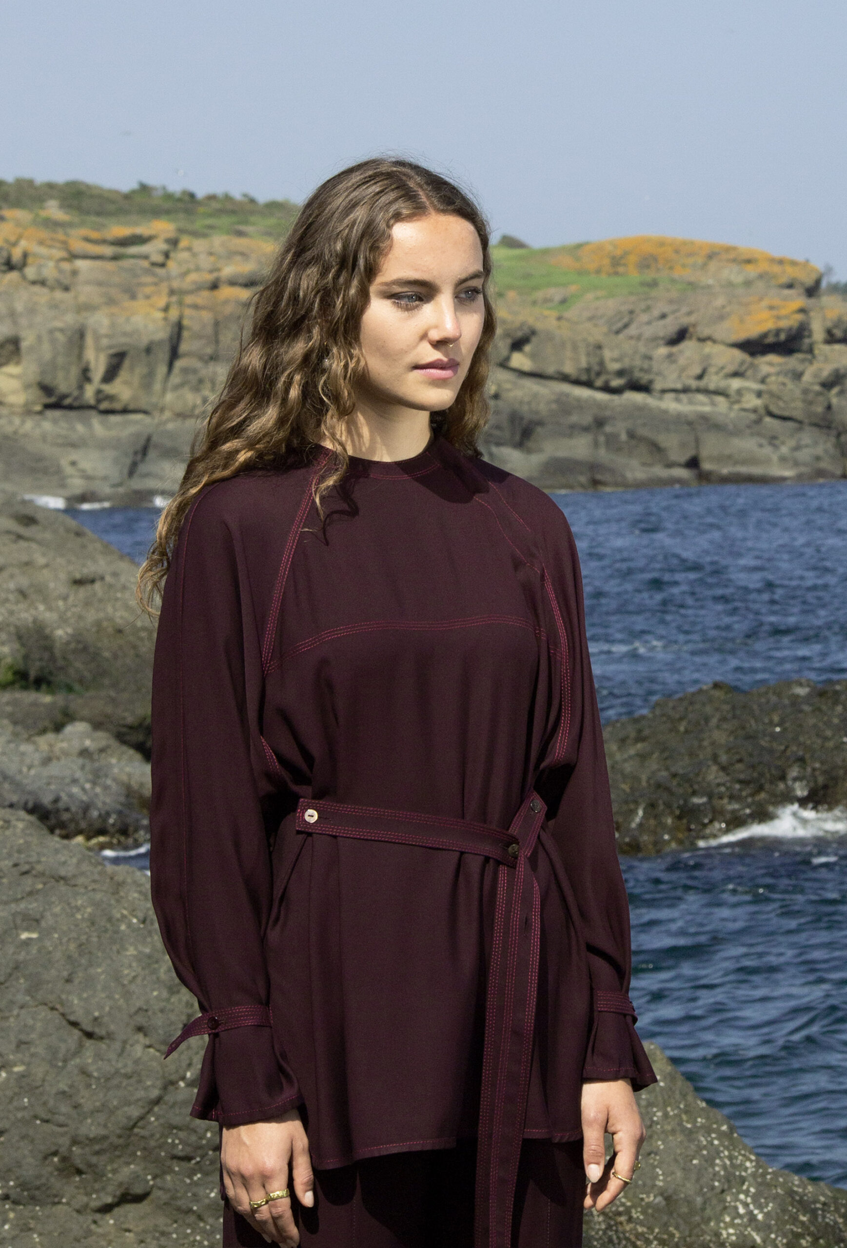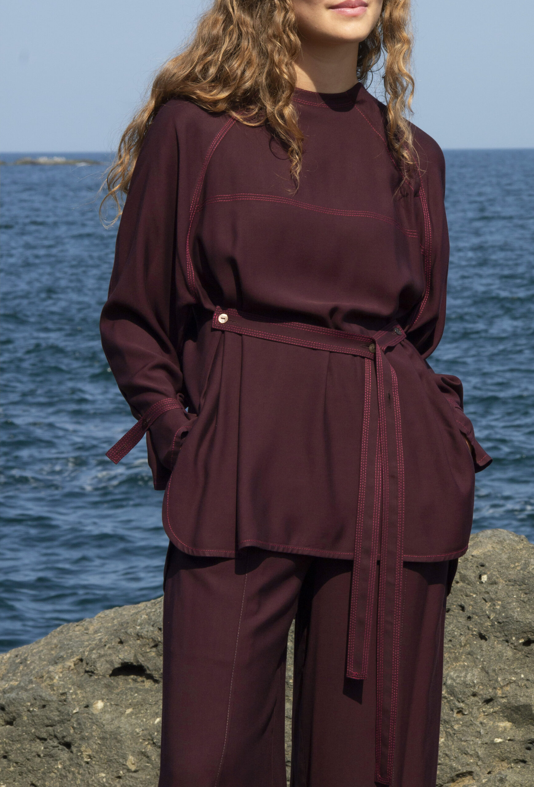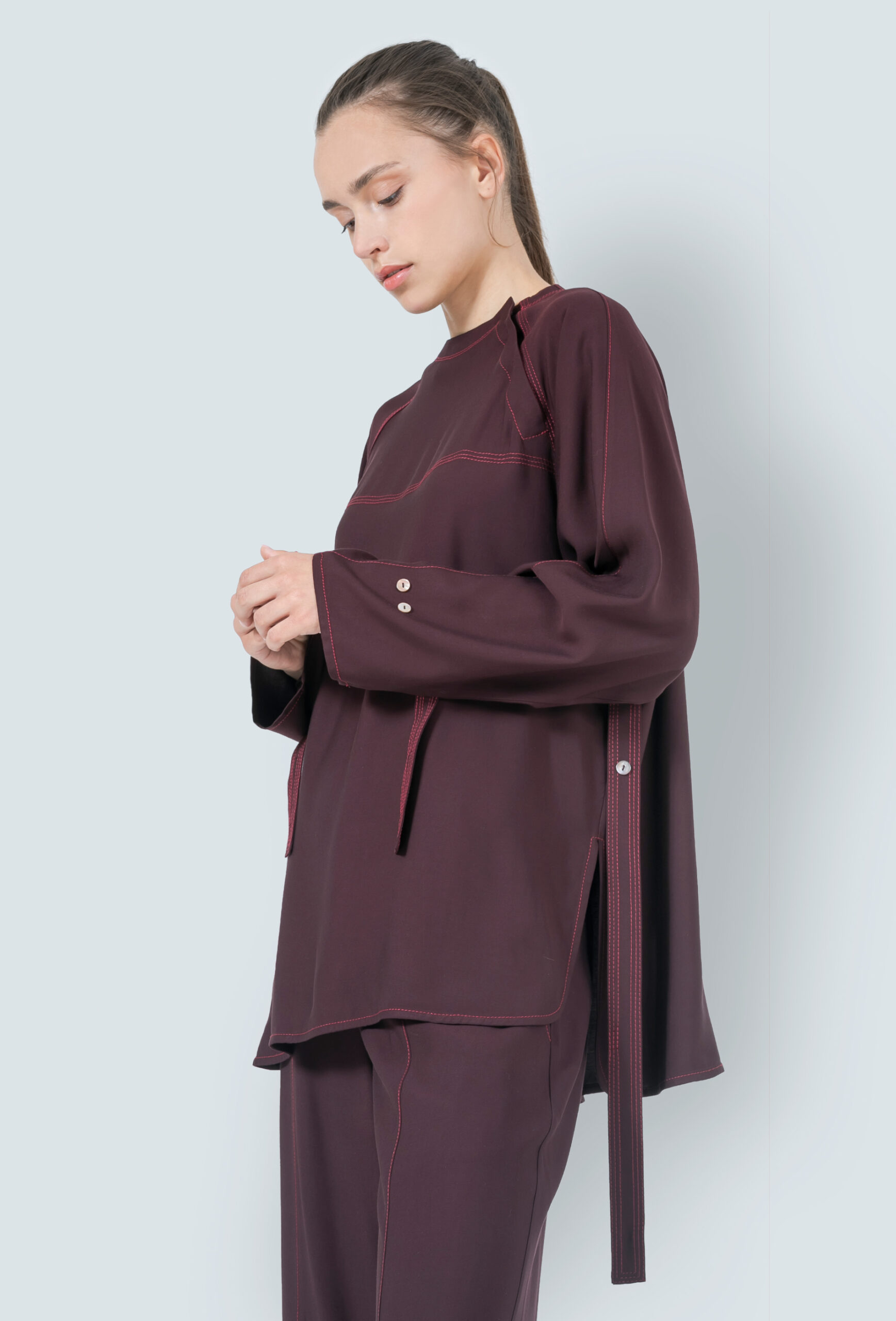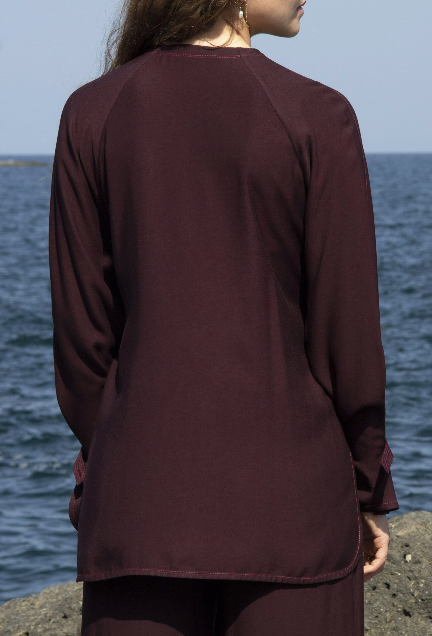 Yarasa kollu, yandan düğmeli, viskon gömlek